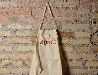 Grembiule da cucina in tessuto resistente, con tasca centrale e lunga cintura per una vestibilità comoda e versatile.