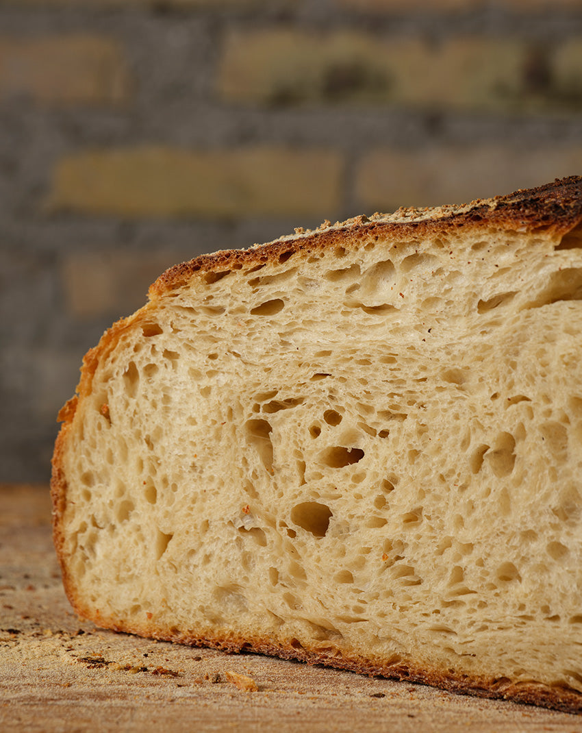 Ricco di gusto, profumato e dalla consistenza compatta, questo pane è il risultato di una panificazione attenta, con grani autoctoni ad alta digeribilità, macinati a pietra e lievitati naturalmente.